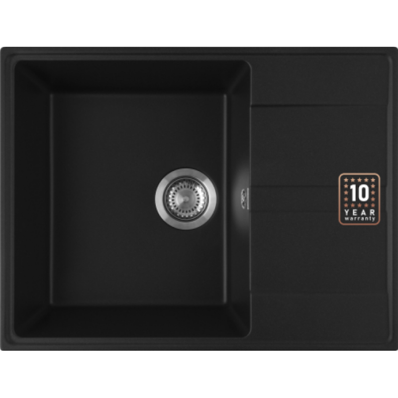 Срок гарантии: 10 летГабариты мойки, мм: 650 х 500 х 200Размер чаши, мм: 385 х 455 х 180Ширина шкафа для установки, см: 50Установка: накладнаяЦвет: черныйФорма мойки: прямоугольнаяМатериал: кварцевый композитДополнительная чаша: естьКомплектация: Мойка, сифон, гофротруба, технический паспорт и гарантийный талонВес, нетто, кг: 10,3Диаметр отверстия смесителя, мм: 35Наличие слива-перелива: естьДиаметр перелива, мм: 30Диаметр сливного отверстия, мм: 90Возможность установки измельчителя: естьСтрана производства: РоссияСрок службы: 10 лет