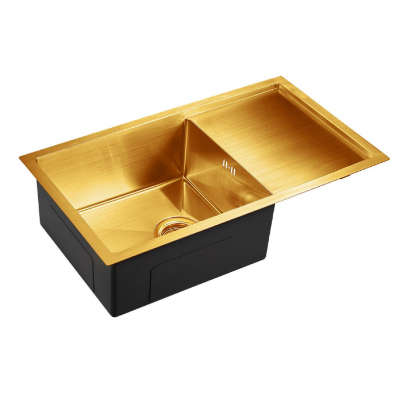 Кухонная мойка из нержавеющей стали с PVD покрытием EMB-124 Мойка из нержавеющей стали AISI 304 с PVD покрытием. AISI 304 содержит 18% хрома и 9% никеля, что обеспечивает максимальную устойчивость к коррозии. PVD покрытие (метод покраски путем напыления в вакууме) встраивается в кристаллическую решетку металла, образуя прочный защитный слой. Легко удаляется жир, налет и разводы от воды. Установленные, на дне и по бокам чаши, резиновые шумопоглащающие накладки и нанесенное антиконденсатное покрытие, делают мойку бесшумной.  Комплектация: сливная арматура, сифон, крепёж, гарантийный талон.    Основные характеристики мойки: Размеры мойки: 700 x 400 мм Размеры чаши: 390 x 350 х 200мм Монтажная тумба от 800 мм Толщина стали: 1.2 мм Способ монтажа: под столешницу / в уровень со столешницей Размер сливного отверстия: 90 мм Размер упаковки: 750 x 450 x 260 Вес брутто: 7кг Гарантия на мойку (сталь) 5 лет. Гарантия не распространяется на резиновые прокладки, комплектующие и механические повреждения. Гарантия на PVD 2 года. Гарантия не распространяется на механические повреждения.