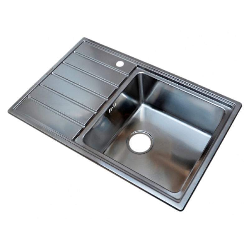 Тип: мойка кухонная Материал: нержавеющая сталь Форма: прямоугольная Ширина мойки: 780 мм Длина мойки: 500 мм Глубина мойки: 215 мм Установка: встраиваемая сверху Число основных чаш: 1 Крыло: есть, оборачиваемая Отверстие под смеситель: 1 Диаметр сливного отверстия: 92 мм Клапан-автомат: есть