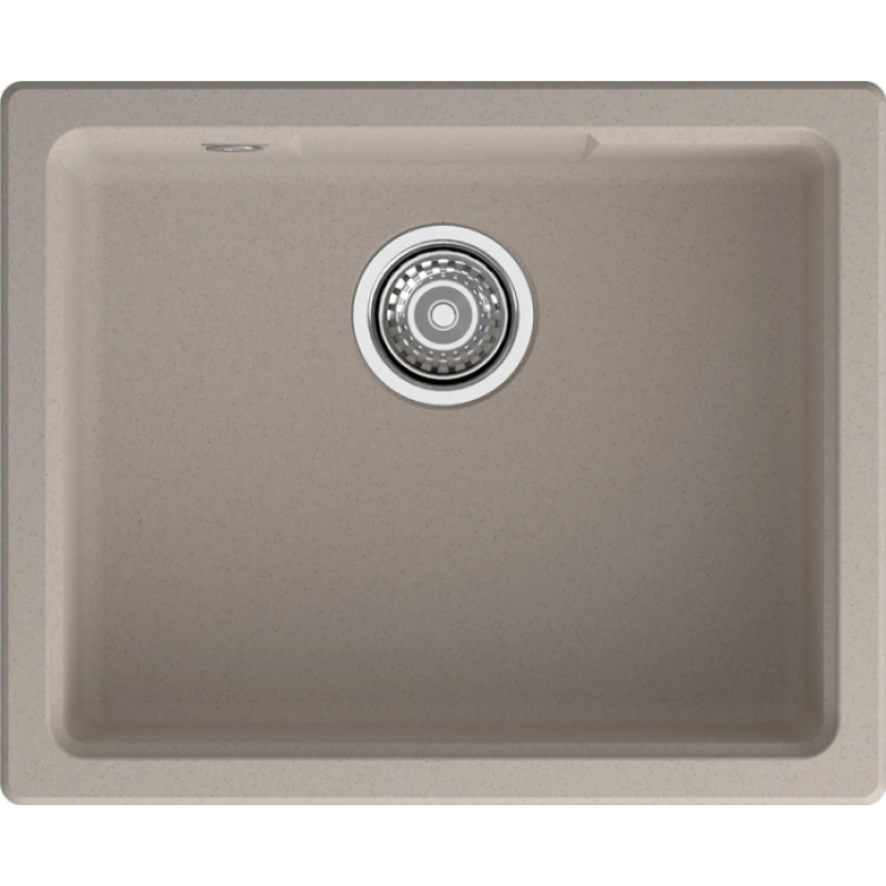 Тип: мойка кухоннаяНазначение: для кухниСпособ монтажа: подстольный монтажРазмер кухонного блока: 600 ммФорма мойки: прямоугольнаяУстановочный проём: 530 х 430 ммКоличество чаш: 1Размер чаши: 490 х 390 х 170 ммОтверстие под смеситель: нетНаличие крыла: нетКомплектация: мойка, сливная арматура, тех.паспортМатериал: кварцЦвет: песочный