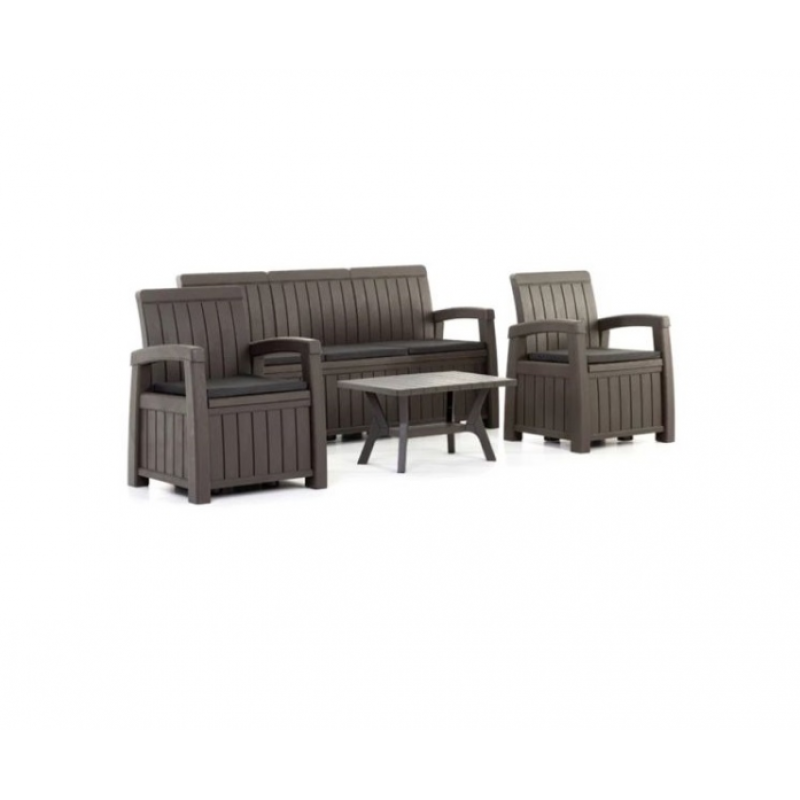 Этот набор станет идеальным решением для создания комфортного пространства на свежем воздухе. В набор входит 3-х местный диван, 2 кресла и столик, что позволяет обустроить уютное место для отдыха и общения с друзьями или семьей. Стильный современный дизайн идеально впишется в любой интерьер, а внешняя имитация дерева делает садовую мебель визуально привлекательной и органично вписывающейся в природный ландшафт.