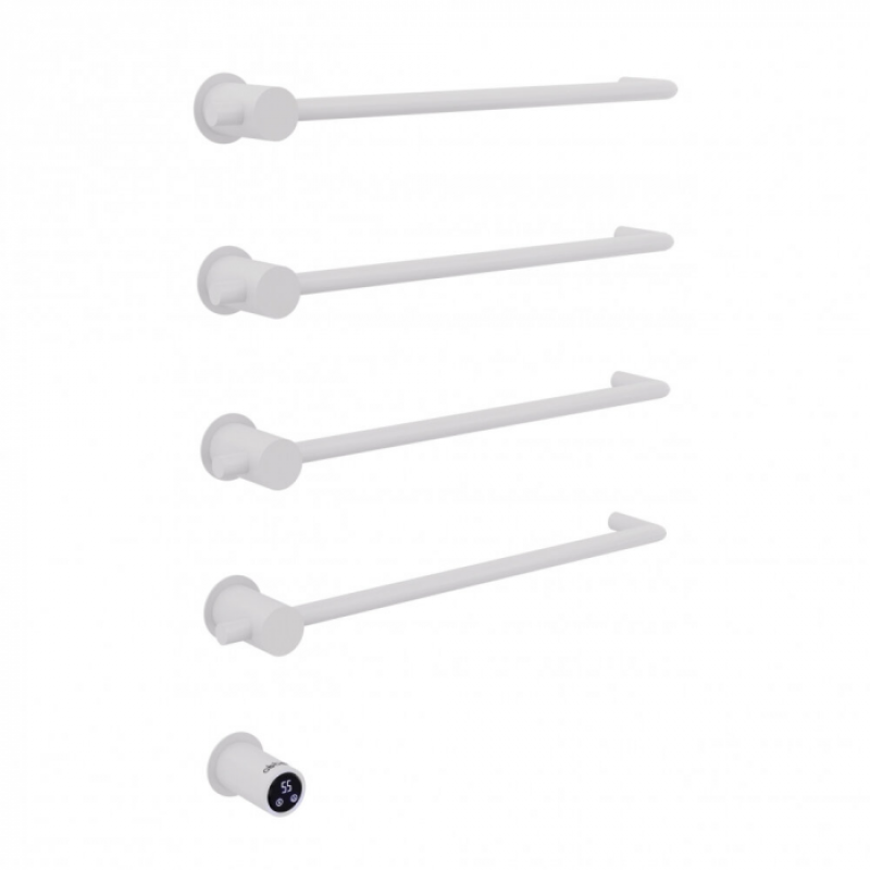 Универсальный дизайн. Белый матовый цвет создаёт эффект благородной сдержанности и легко вписывается в любые интерьерные решения — от классики до ультрасовременных стилей.Надёжность конструкции. Корпус из высококачественной нержавеющей стали с защитным порошковым покрытием гарантирует устойчивость к коррозии и длительный срок службы.Эргономичная форма. E‑ образная конструкция с 4 перекладинами обеспечивает удобное размещение текстиля при компактных размерах — оптимальное решение для небольших помещений.Энергоэффективность. Потребляемая мощность всего 44 Вт позволяет использовать прибор в режиме 24/7 без существенного влияния на расход электроэнергии.Интеллектуальное управление. Встроенный терморегулятор и таймер дают возможность точно настраивать температуру (45− 60 ∘ С) и время работы полотенцесушителя (1-8 часов).Эстетичный монтаж. Скрытое подключение обеспечивает безупречный внешний вид: все коммуникации скрыты, а конструкция выглядит лаконично и цельно.Тип: полотенцесушитель электрическийНазначение: для ванной комнатыРазмер(Ш:Г:В): 52 x 8 x 64.5 смКоличество перекладин: 4Способ монтажа: вертикальныйМощность: 44 ВтПодключение: скрытое электрическое соединениеНаправление подключения: левое, правоеНапряжение: 220 ВТеплоноситель: сухой ТЭНМатериал: нержавеющая стальЦвет: белый матовый
