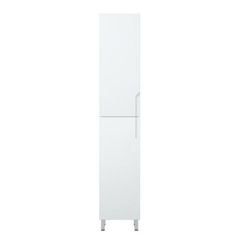 У пенала "Юта" 2 распашные двери, позади по две вкладные полки с возможностью регулировки по высоте. Двери без ручек - есть специально сделанная фрезеровка для удобного открывания. Пенал является универсальным, то есть может быть как правым, так и левым путем переворачивания. Все двери на петлях с доводчиками. У пенала 4 металлические опоры. Фасады и боковины - эмаль белая глянец.