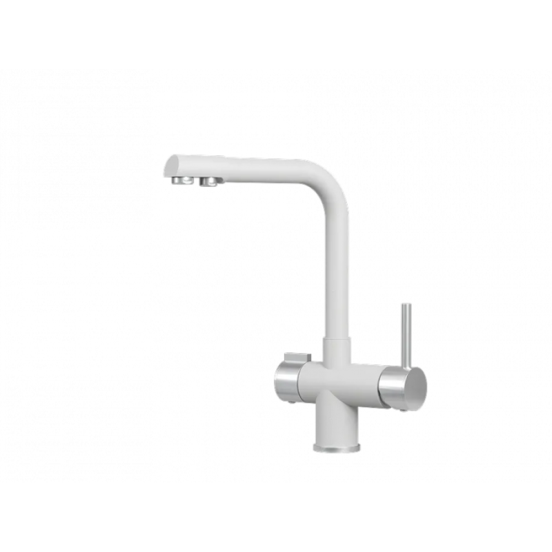 Стильный смеситель из нержавеющей стали с подключением к фильтру для питьевой воды — идеальное решение для Вашей кухни. Он не только добавит элегантности Вашему интерьеру, но и обеспечит доступ к чистой и безопасной питьевой воде. Изготовленный из высококачественной нержавеющей стали, он устойчив к коррозии и легко очищается. Удобный механизм управления позволяет точно регулировать температуру и напор воды. Подключение к фильтру гарантирует, что Вы всегда будете иметь под рукой свежую и вкусную воду.Тип: смеситель с подключением к фильтру питьевой водыНазначение: для кухонной мойкиМонтаж: на мойку, на столешницуКоличество монтажных отверстий: 1Управление: рычажноеМеханизм: керамический картриджДиаметр керамического картриджа: 35 ммТип подводки: гибкая  Стандарт подводки: 1/2"Вращение излива: поворотныйВращение: 360 градусовВыдвижной излив: нетМатериал корпуса: нержавеющая стальЦвет: арктик