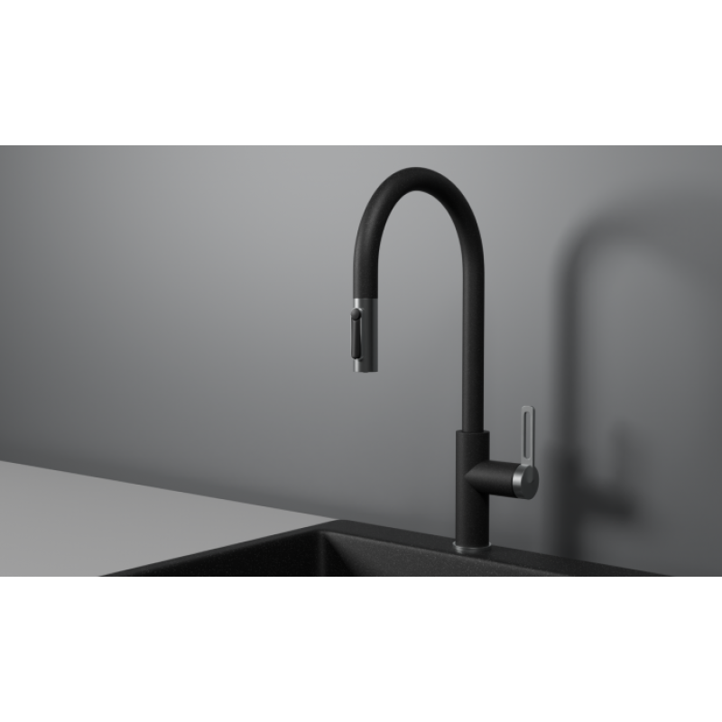 Тип: смеситель с выдвижным изливом и подключением к фильтруНазначение: для кухонной мойкиМонтаж: на мойку, на столешницуКоличество монтажных отверстий: 1Функциональность: 2 в 1  Управление: рычажноеМеханизм: керамический картриджДиаметр керамического картриджа: 35 ммТип подводки: гибкая  Стандарт подводки: 1/2"Вращение излива: поворотныйВращение: 360 градусовВыдвижной излив: даПодключение к фильтру с питьевой водой: даАэраторы Neoperl: даКомплектация: гибкая подводка, комплект креплений, переходник для подключения фильтра с питьевой водойМатериал корпуса: нержавеющая стальЦвет: черный