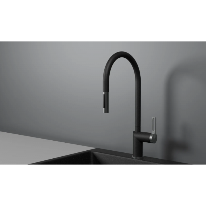 Смеситель для кухни с выдвижным изливом Granula. Смеситель сочетает в себе высокую функциональность и надежность, делая его незаменимым помощником на вашей кухне. Смеситель имеет прочный корпус из высококачественной нержавеющей стали AISI 304. Данная сталь устойчива к коррозии и легко переносит перепады давления и температур.Тип: смеситель с выдвижным изливом  Назначение: для кухонной мойкиМонтаж: на мойку, на столешницуКоличество монтажных отверстий: 1Управление: рычажноеМеханизм: керамический картриджДиаметр керамического картриджа: 35 ммТип подводки: гибкая  Стандарт подводки: 1/2"Вращение излива: поворотныйВращение: 360 градусовВыдвижной излив: даАэраторы Neoperl: даКомплектация: гибкая подводка, комплект крепленийМатериал корпуса: нержавеющая стальЦвет: черный