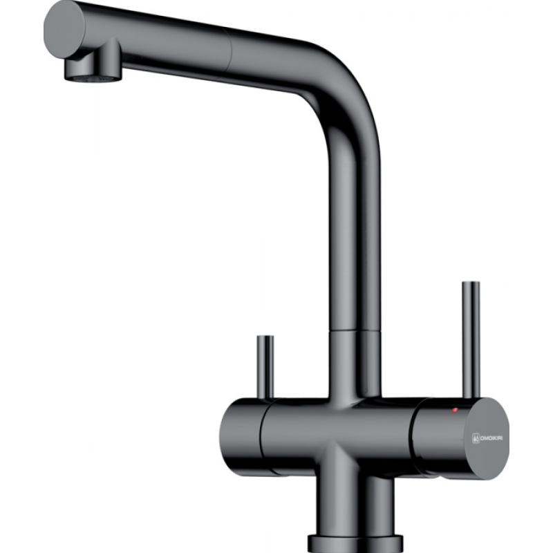 Смеситель для кухни Omoikiri Takamatsu S-GM вороненая сталь 4994564 — это стильное и функциональное решение для вашей кухни. Он обладает уникальной комбинацией однорычажного управления, дополнительного крана для питьевой воды и выдвижного излива, что делает его удобным и практичным выбором.