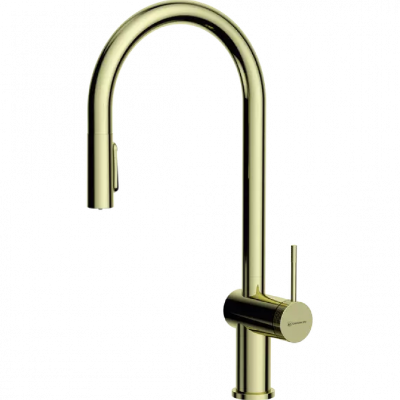 Отверстие для установки, мм: 35Цвет: Светлое золотоКартридж: Керамический ∅ 35 ммАэратор: ПластикПодводка: Гибкая в оплетке из нержавеющей сталиКрепление: МеталлМатериал корпуса: ЛатуньВысота, мм: 475Конфигурация: С вытяжным шлангомГарантия: 5 летВес: 3.34 кг.Размер упаковки, см (Д х Ш х В): 73 х 34.5 х 7Особенности:Важной особенностью Tahara-SB является возможность подключения фильтра, который обеспечивает чистую и безопасную воду. Эта функция особенно актуальна для тех, кто заботится о своем здоровье и хочет избежать вредных примесей в воде. Подача фильтрованной воды осуществляется простым нажатием на кнопку, которая расположена на изливе смесителя. Это делает процесс использования фильтрации интуитивно понятным и удобным. Еще одна ключевая особенность смесителя — это наличие вытяжного шланга. Он значительно упрощает мытьё овощей, наполнение кастрюль и очищение труднодоступных уголков в мойке. Вытяжной шланг обеспечивает высокую подвижность и свободу движений. В смесителе также есть два режима – струя и душ: режим душа идеально подходит для быстрого ополаскивания, а струя – для более точного направленного потока воды. Ручка смесителя украшена стильным паттерном, который добавляет изысканности и оригинальности. Такой дизайн легко впишется в любой интерьер.