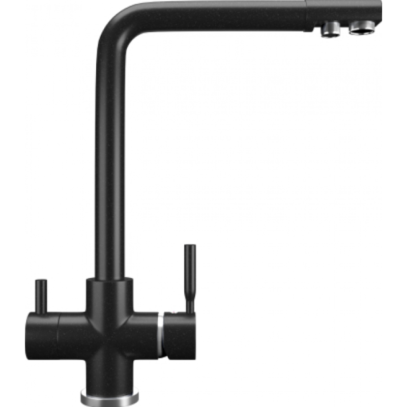 Срок гарантии: 3 года на материал корпуса, 1 год на комплектующие к смесителю и 1 год на материал покрытияЦвет: ультра-черныйВысота, мм: 330Высота излива, мм: 295Длина излива, мм: 207Подача питьевой воды: естьКомплектация: гибкая подводка, комплект креплений, переходник для подключения фильтра с питьевой водойАэратор: естьМатериал смесителя: латуньУстановка: вертикальная, на мойкуДиаметр монтажных отверстий, мм: 35Количество монтажных отверстий: 1Стандарт подводки шланга: 1/2Управление: двухрычажноеСтиль: современныйИсполнение излива: монолитный, поворотный, с подключением к фильтру для питьевой водыЗапорный клапан смесителя: керамический картридж Wanhai, диаметр 35 ммВид крепления смесителя: на гайкеЛейка: нетНаличие излива: естьВес, нетто, кг: 2,88Страна производства: РоссияСрок службы: 5 лет