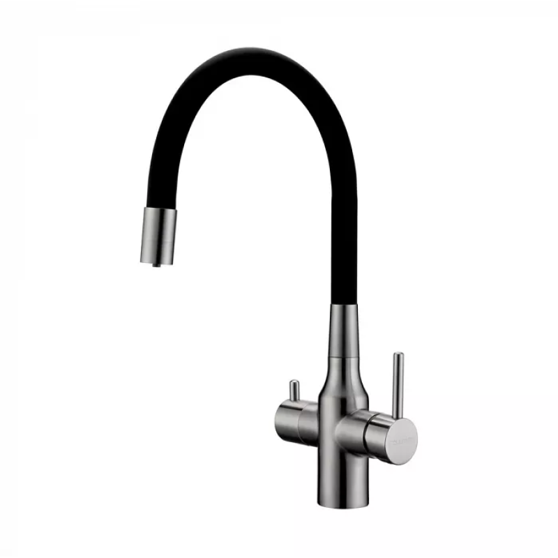 Тип: смеситель однорычажный с гибким изливомНазначение: для кухниТип установки: на мойку/столешницуКоличество отверстий для монтажа: 1Функция 2 в 1: даУправление: рычажноеМеханизм: керамический картриджТип подводки: гибкаяСтандарт подводки: 1/2"Излив: гибкий, поворотныйПоворот излива: 360°Возможность подключения системы фильтрации питьевой воды: естьМатериал: латунь / силиконЦвет: нержавеющая сталь