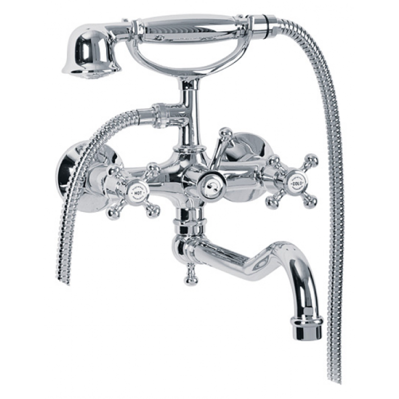 Артикул: ML.LAD-986 Cr Тип: смеситель Область применения: бытовая Отверстия для монтажа: на 2 отверстия Назначение: для ванны с душем  /  набор: смеситель и душевой гарнитур Стилистика дизайна: ретро Встраиваемая система: нет Форма: округлая Стандарт подводки: 1/2" Механизм: керамический картридж Управление: вентильное Монтаж: на стену Материал: латунь Форма излива: традиционная Цвет: хром Длина излива, см: 25 Вращение излива: поворотный Оснащение: душевой шланг  /  душевая лейка  /  эксцентрики  /  держатель для душевой лейки Гарантия: 5 лет Страна: Италия
