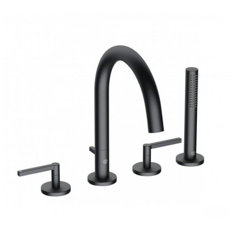 Тип: смесительНазначение: для ванныМонтаж: на борт ванныКоличество отверстий для монтажа: 4Управление: вентильноеТип подводки: жесткаяСтандарт подводки: 1/2"Механизм:  керамические кран-буксы 90° Soft-StartРасход воды  при давлении 3 бара: 27 л/минТип аэратора:  аэратор s-pointer M 24 x 1Механизм регулировки держателя ручной лейки:  нерегулируемыйКлапан защиты от обратного потока: даДлина душевого шланга: 1500 ммОснащение:  аэратор, душевой шланг, душевая лейкаМатериал: латуньПоверхность: матоваяЦвет: черный матовый