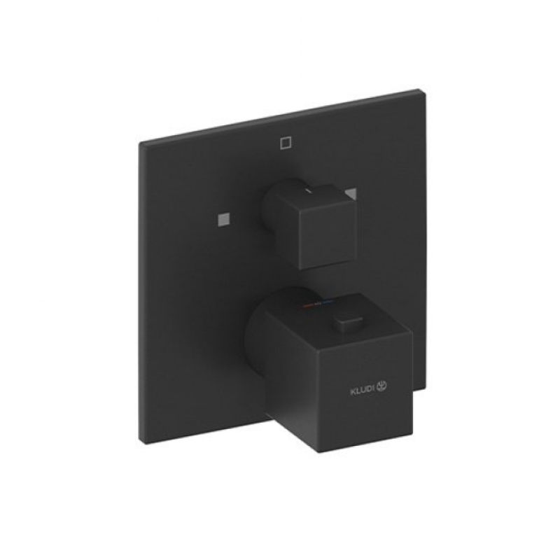 Тип: смеситель термостатический  (внешняя монтажная часть)Назначение: для ванны и душаМонтаж: настенный (внутристенный)Количество монтажных отверстий: 1Механизм: термостатический картриджУправление: вентильноеТип подводки: жесткаяСтандарт подводки: 3/4"Количество потребителей: 2Ограничение температуры: при 40 °CВанна: расход воды 28 л/мин при давлении 3 бараДуш: расход воды 24 л/мин при давлении 3 бараСкрытая монтажная часть: SLIM.BOXX 88022Материал: латунь, пластикПоверхность: матоваяЦвет: черный матовый