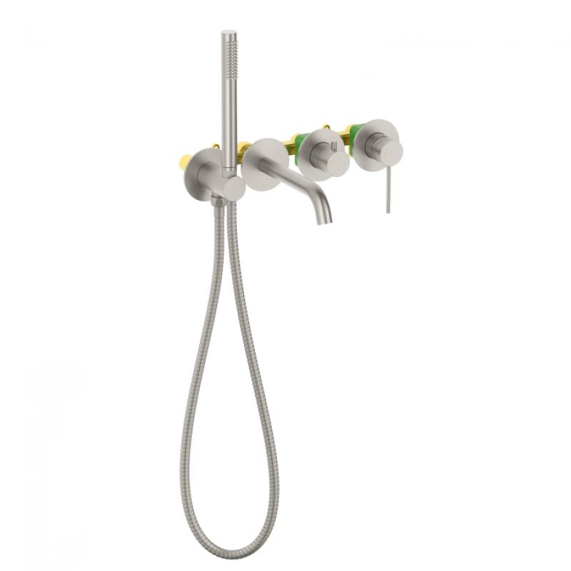 Встраиваемый смеситель Timo Saona 2314 предназначен для монтажа в твердой или полой стене. Уникальная дизайнерская модель с раздельными горизонтальными блоками, создаст неповторимый современный интерьер в ванной комнате. Основные преимущества встроенного смесителя: коммуникации, крепления и механизмы спрятаны в стену и видны только декоративные элементы, установить встроенный смеситель можно в любом месте. Стильная лейка-карандаш удобна в использовании и фиксируется в держателе с подключением душа. Регулировка температуры и напора воды осуществляется джойстиком справа. Переключение потока воды с излива на ручную лейку осуществляется поворотом ручки дивертора. Тип: смеситель встроенный Назначение: для ванны Монтаж: встроенныйКоличество монтажных отверстий: 2Тип подводки: жесткаяСтандарт подводки: 1/2"Управление: рычажноеЛейка в комплекте: даКоличество режимов лейки: 1Тип дивертора: дивертор с керамическими пластинамиДиаметр картриджа: 35 ммМатериал: латунь класса АПоверхность: матовая Цвет: никель