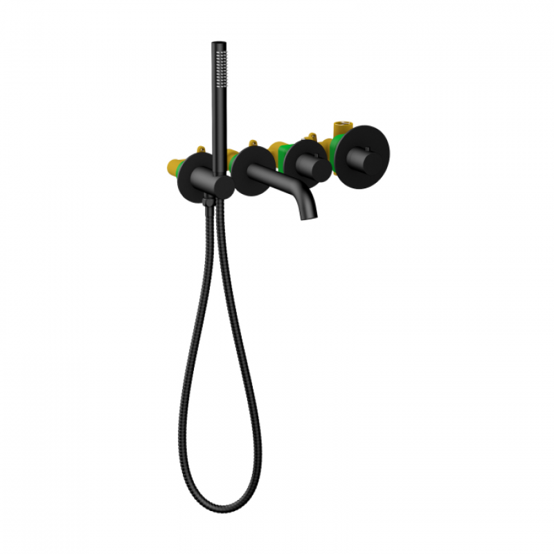 Встраиваемый смеситель Timo Saona 2324 предназначен для монтажа в твердой или полой стене. Уникальная дизайнерская модель с раздельными горизонтальными блоками, создаст неповторимый современный интерьер в ванной комнате. Основные преимущества встроенного смесителя: коммуникации, крепления и механизмы спрятаны в стену и видны только декоративные элементы, установить встроенный смеситель можно в любом месте.Термостатический картридж поддерживает стабильную температуру воды, обеспечивая максимально комфортные условия для принятия водных процедур. Стильная лейка-карандаш удобна в использовании и фиксируется на держателе с подключением шланга для душа. Регулировка температуры и напора воды осуществляется джойстиком справа. Переключение потока воды с излива на ручную лейку осуществляется поворотом ручки дивертора. Тип: смеситель с термостатомНазначение: для ванны с душемМонтаж: скрытый монтажКоличество монтажных отверстий: 2Тип подводки: жесткаяСтандарт подводки: 1/2"Лейка в комплекте: даКоличество режимов лейки: 1Длина шланга: 150 смМатериал: латуньПоверхность: матоваяЦвет: черный матовый