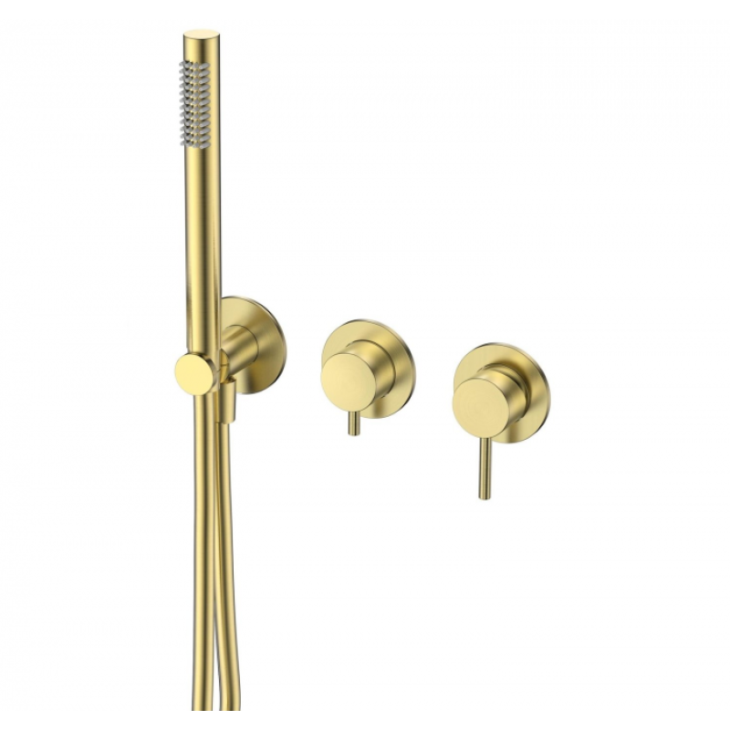Тип: смесительНазначение: для душа, для ванныВстраиваемый смеситель: даМонтаж: на стенуУправление: рычажныйОтверстия для монтажа: на 3 отверстиеОсобенности: скрытый монтажРассчитан на 3 потребителя: даВстраиваемая часть в комплекте: даДушевой шланг: в комплектеДлина шланга: 1500 ммДушевая лейка: в комплектеРазмер лейки: 225 х 24 ммМатериал: латунь, пластикЦвет: золото шлифованное