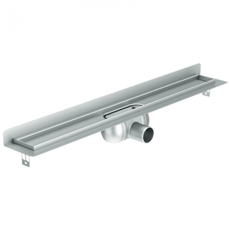 Тип: душевой канал с вертикальным  фланцем  Назначение: для душаУстановка:  в пол, пристеннаяМонтажная высота: 92-140 ммГидрозатвор: 50 ммПропускная способность:  0,91 л/сек  Вид затвора:  мокрыйВыпуск: горизонтальный DN 50Cифон: двухсекционный (съемный)Материал: нержавеющая стальЦвет:  нержавеющая сталь