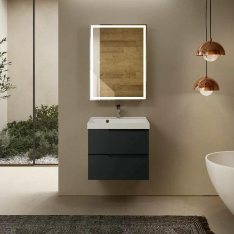 Тип: тумба под раковинуНазначение: для ванной комнатыМонтаж: подвеснойТип установки: настенныйОриентация: универсальнаяФорма: прямоугольнаяГлубина изделия: 440 ммШирина изделиям: 600 ммВысота изделия: 495 ммСистема хранения: выдвижные ящикиДоводчики: даМатериал корпуса: МДФПокрытие корпуса: полимерноеМатериал фасада: МДФПокрытие фасада: полимерноеЦвет: антрацит