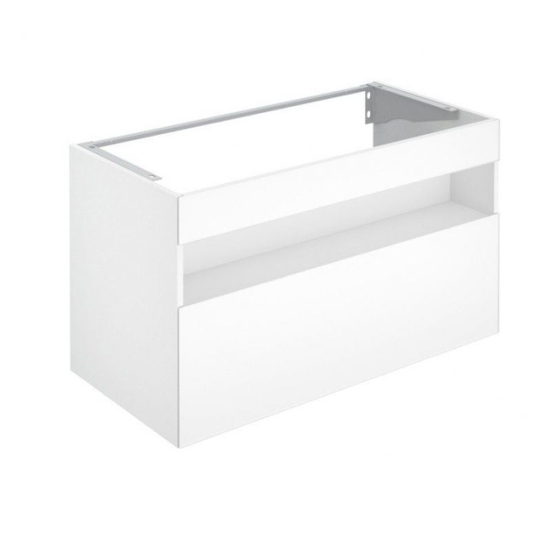 Тип: тумба под раковинуНазначение: для ванной комнатыМонтаж: подвеснойТип установки: настенныйФорма: прямоугольнаяРазмер:  1000x625x490  ммСистема хранения: выдвижной ящик, полкаДоводчик: даПластиковый сифон: 1 1/4 x 32Материал: ДСП, стеклоПокрытие: эмальЦвет: белый/белый