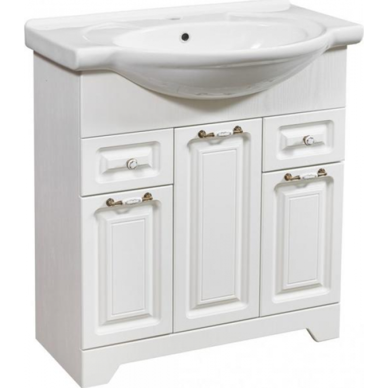 Тумба «Кармела 75» ольха белая оснащена тремя дверцами и двумя выдвижными ящиками. Плавное и бесшумное закрывание обеспечивается доводчиками. Снизу тумба имеет элегантный цоколь, который не только скрывает за своим фасадом ножки, но и придает ей визуальную легкость и современный вид. Тумба комплектуется изысканными бронзовыми ручками, добавляющими нотку роскоши и винтажного шарма, гармонично сочетаясь с общим стилем. Она изготовлена из влагостойкого ЛДСП премиум-класса "Lamarty", которое обеспечивает превосходный внешний вид и значительно увеличивает срок эксплуатации. Пониженный класс содержания химических веществ в ЛДСП делает мебель максимально экологичной. К данной тумбе подходит раковина «Байкал 75», которая приобретается отдельно.