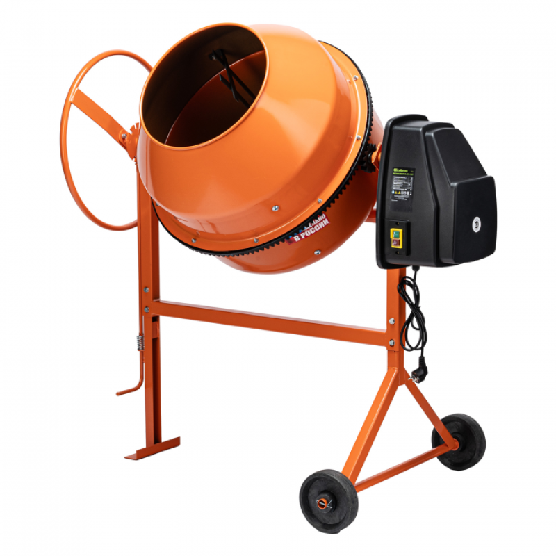 Мощность (Вт) 700Тип двигателя электрическийНапряжение 220 ВОбъем барабана 180 лСкорость вращения барабана 23 об/минТип подключения сетевая вилкаГабариты без упаковки 1208х740х1282 ммВес нетто 31 кгОбъем готового раствора 80 лДиаметр загрузочного отверстия 380 ммТип привода венечныйМаксимальная крупность заполнителей 40 ммПринцип действия гравитационныйПривод наклона ручнойПреимущества  Надежность — полиамидный венец устойчив к трению и не боится коррозииТермозащита — в случае перегрева двигатель автоматически отключается, что предотвращает его поломку и позволяет сохранить высокий рабочий ресурс бетоносмесителяЭлектробезопасность — токопроводящие элементы надежно изолированы, бетоносмесителю присвоен класс защиты IIЗащита от внезапного включения — электромагнитный выключатель предотвращает случайный запуск двигателя при восстановлении напряжения питания бетоносмесителяУдобная загрузка и выгрузка смеси — барабан наклоняется при помощи маховика и легко фиксируется в нужном положенииСтабильная работа — поликлиновый ремень устойчив к разрыву даже при высоких нагрузкахРемонтопригодность — в конструкции отсутствует редуктор, поэтому при необходимости можно заменить венец, подшипники или шестерню без замены всего узлаМобильность — прочные колеса облегчают перемещение бетоносмесителя по рабочей площадке
