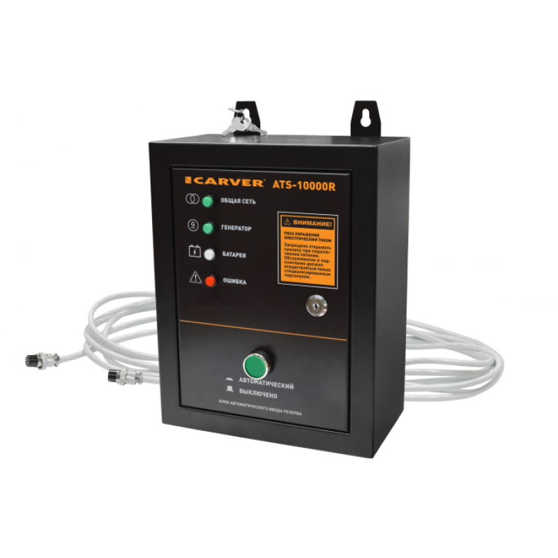 Автомат ввода резерва Carver ATS-10000R предназначен для автоматического запуска резервного электрогенератора и обеспечения подачи электроэнергии к потребителю в случае отключения основного сетевого питания.Данный блок предназначен исключительно для использования с бензиновыми генераторами Carver оборудованных разъемом подключения блока АВР (ATS) типа DF20-8. Использование с другими моделями генераторов или моделями не имеющими данной функции недопустимо.Технические характеристикиМакс. коммутируемая мощность – сеть, кВт:10Макс. коммутируемая мощность – генератор, кВт:10Соединительный сигнальный провод, м:5Разъем для подключения:DF20-8Коммутируемых фаз:1/3Макс. напряжение коммутации, В:400Устройство коммутации:Электромагнитный переключатель, 2 штНапряжение катушки управления, В:230Максимальный ток зарядного устройства, А:1Степень защиты:IP31Материал шкафа:СтальТип крепления:НавеснойОтверстия ввода:снизуДиапазон рабочих температур:от –10 до +40°СГабариты упаковки, см:40 х 32,5 х 20Вес нетто / брутто, кг:4,7 / 5,35