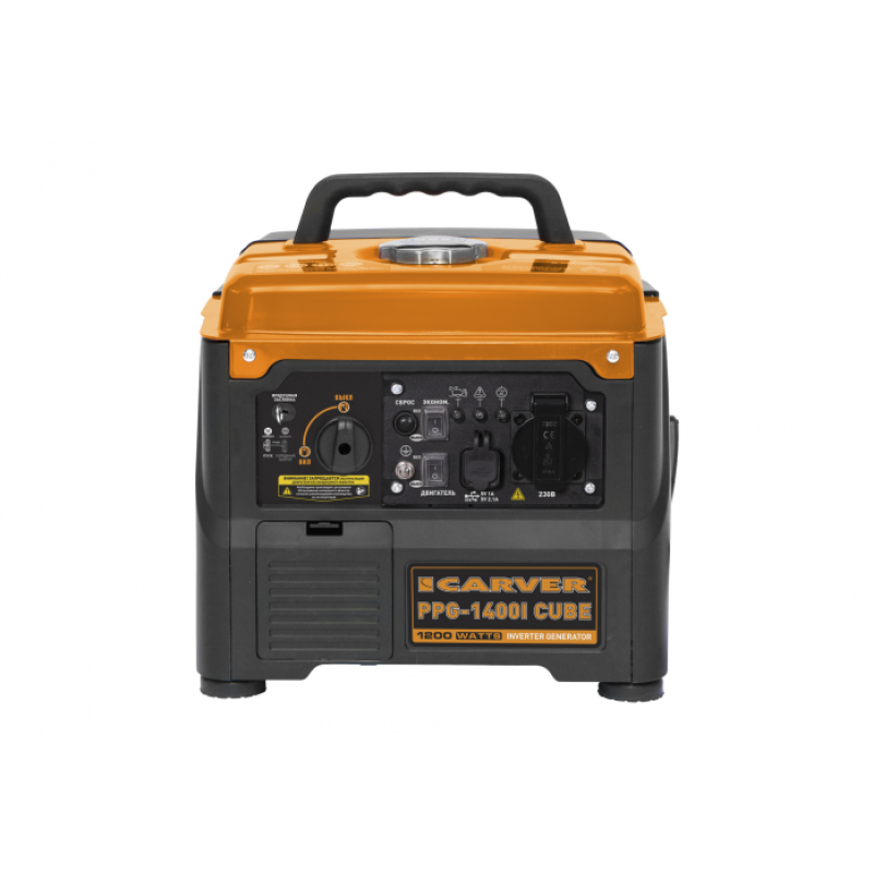 Порты подключения DOUBLE USBРежим экономии топливаДатчик защиты от перегрузки и короткого замыканияРежим работы ~230В/50ГцУстройство защиты двигателя при пониженном уровне маслаВозможность подключения цифровых устройств, бытовых электронных приборовБензиновый инверторный генератор Carver PPG-1400I CUBE предназначен для использования, как аварийный источник электроснабжения.Технические характеристикиМодель двигателя:R56iТип двигателя:4-тактный, 1-цилиндр., с возд. охлаждениемНоминальная мощность генератора, кВт:1Максимальная мощность генератора, кВт:1,2Выходное напряжение, В:230Тип розеток:1x16A/230ВВремя непрерывной работы при нагрузке 100% / 50%, ч:3,5 / 5,8Удельный расход топлива при нагрузке 100% / 50%, г/кВт·ч:556 / 590Рабочий объем двигателя, куб. см:56Автомат защиты:ЕстьУстройство защиты двигателя при пониженном уровне масла:ЕстьДвойной USB-порт:12V / 5AРежим экномии топлива:ЕстьТип запуска:Ручной стартерУровень звукового давления, (Lwa), dB:71,9Рекомендуемое масло:SAE 30Емкость картера двигателя, л:0,28Рекомендуемое топливо:АИ92Емкость топливного бака, л:2,8Система зажигания:CDIСвеча зажигания:A5RTCГабариты генератора, см:33,6 х 32,7 х 30,6Габариты упаковки, см:37 х 35,5 х 33,5Вес нетто / брутто, кг:12,5 / 13,7