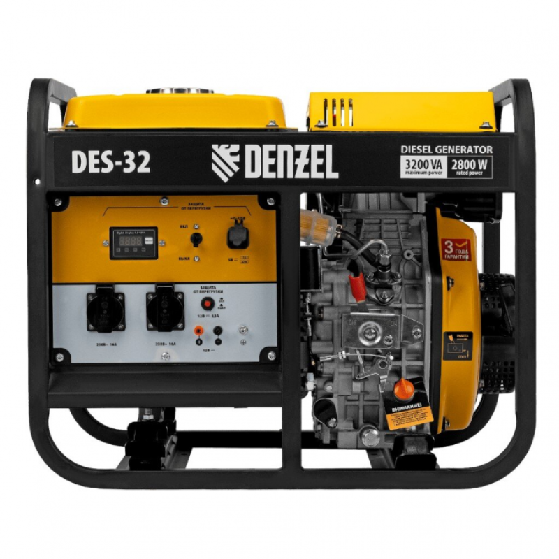 Генератор - это надежный источник электроэнергии, который обеспечивает бесперебойное функционирование различных объектов, от небольших предприятий до крупных инфраструктурных комплексов. Его назначение заключается в обеспечении стабильного и качественного электроснабжения в условиях отсутствия или ограничения доступа к централизованным сетям, а также при возникновении аварийных ситуаций.Характеристики:Тип двигателя: дизельный.Мощность: 3.2 кВт.Уровень шума: 110 дБ.Объем двигателя: 296 см³ .Объем топливного бака: 11 л.Объем масла в картере: 1.1 л.Расход топлива: 1 л/ч.Стартер: ручной.Топливо: ДТ.Количество розеток: 2.Тип розетки: 230В/16А.Альтернатор: синхронный.Степень защиты: IP23.Обмотка альтернатора: медь.Мощность: 5.5 л.с.Индикатор уровня топлива: есть.Дисплей: есть.Преимущества:Возможность подключения точных устройств – система AVR гарантирует стабильность выходного напряжения.Мощный двигатель обеспечивает надежную работу на весь срок службы.Одного полного бака достаточно для непрерывной работы в течение 11 часов.Простота отслеживания уровня топлива – индикатор своевременно предупредит о необходимости заправки.Ключевые показатели видны на многофункциональном цифровом дисплее.Генератор не запускается при недостаточном количестве масла в картере.Прочная рама обеспечивает защиту от повреждений при транспортировке или работе в сложных условиях.