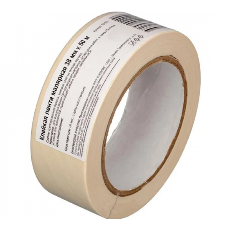Клейкая малярная лента ООО Комус 38 мм х 50 м, крепированная 767971 не оставляет следов после снятия. Предназначена для использования при проведении малярных, штукатурных работ, а также в бытовых условиях для временной герметизации швов и трещин, заклейки окон.