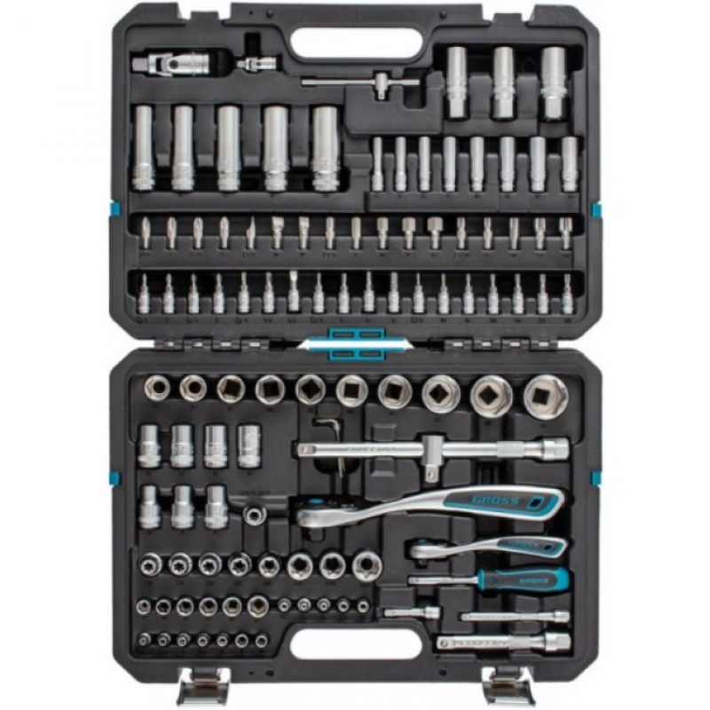 Ключ трещоточный 1/4"Ключ трещоточный 1/2"Удлинитель 50 мм 1/4"Удлинитель 100 мм 1/4"Удлинитель 125 мм 1/2"Удлинитель 250 мм 1/2"Вороток 1/4"Отвертка-держатель 1/4"Кардан 1/4"Кардан 1/2"Переходник 1/2" – 3/8" (с установкой на удлинитель 1/2")Адаптер для бит 5/16" - 1/2"Головки торцевые 1/4": 4, 4.5, 5, 5.5, 6, 7, 8, 9, 10, 11, 12, 13, 14 ммГоловки торцевые 1/4" Е: Е4, Е5, Е6, Е7, Е8Головки торцевые удлиненные 1/4": 6, 7, 8, 9, 10, 11, 12, 13 ммГоловки торцевые 1/2": 10, 11, 12, 13, 14, 15, 16, 17, 18, 19, 20, 21, 22, 24, 27, 30, 32 ммГоловки торцевые 1/2" Е: Е10, Е11, Е12, Е14, Е16, Е18, Е20, Е24Головки торцевые удлиненные 1/2": 14, 15, 17, 19, 22 ммГоловки торцевые свечные (с резиновой вставкой): 14, 16, 21 ммИмбусовый ключ: 1.5, 2, 2.5 ммБиты с торцевыми головками 1/4": SL4, SL5.5, SL6.5 PH1, PH2 PZ1, PZ2 H3, H4, H5, H6 Т8, Т10, Т15, Т20, Т25, Т27, Т30Биты 5/16": SL8, SL10, SL12 PH3, PH4 PZ3, PZ4 H7, H8, H10, H12, Н14 T40, Т45, Т50, Т55, Т60Кейс.